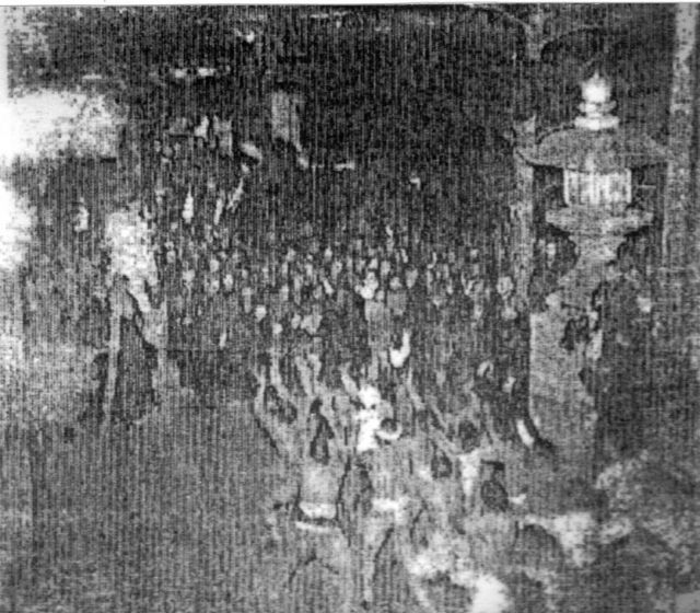 昭和七年(1932年)上海事変の起こった年に田口市松氏の発案で、またその奇祭を再現しょうと高浜神社に申し込んで、その年から再び高浜神社境内で行われることになった。この場合は、お玉を持った者が高浜神社の鳥居を出れば、その者は勝利者となったようである。私が見たのはその頃であったように思う。春日神社の場合は旧暦の一月六日であったが、高浜神社に移ってからは新暦の一月六日と改められたとか。