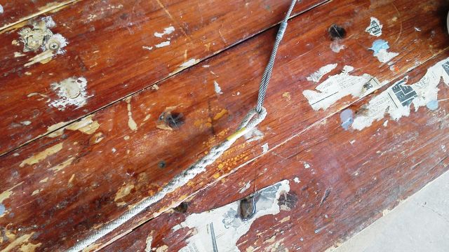 4.ヨットを陸沈(おかちん)させてハサミでガスケットを数mmカットして調整しました。