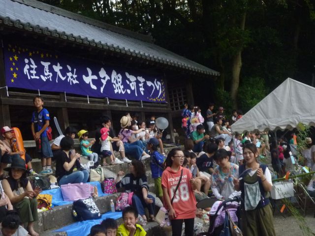 少し早いような気もしますが、生駒神社では大勢が集まり「往馬大社 七夕銀河まつり」が始まっていました。屋台も出ており、今夜は盆踊り