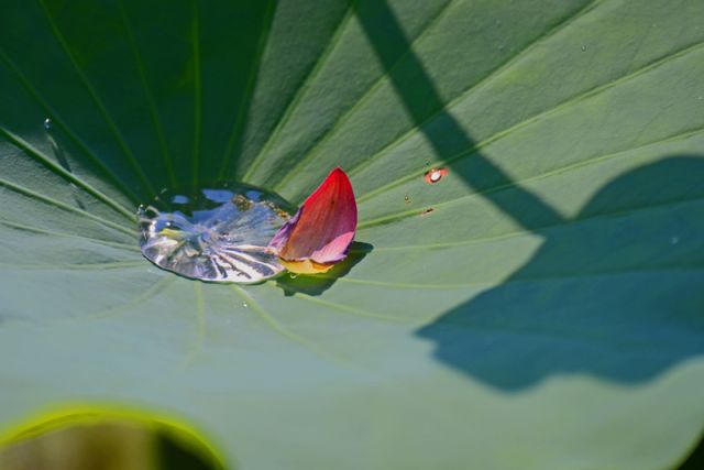 早朝6:00より日本庭園の蓮の花を撮りに行きました。蓮の葉に酒を注ぎ茎の下から