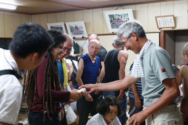 吹田まつりが終わり自治会館で反省会があり今回参加した外国人も挨拶(日本語堪能)を行い「大変楽しかったので、来年も是非参加したいとのコメント」があり大変盛り上がりました。彼らはビールより日本酒が好み、けっこう飲んでました。
