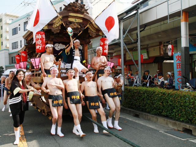 今年は日本の文化に接するため是非参加したいとの要望があり、外国人(フランス、トルコ、ベネズエラ)の相撲ユニフォーム(まわし姿)での参加がありちょっと一風変わった地車パレードとなりました。