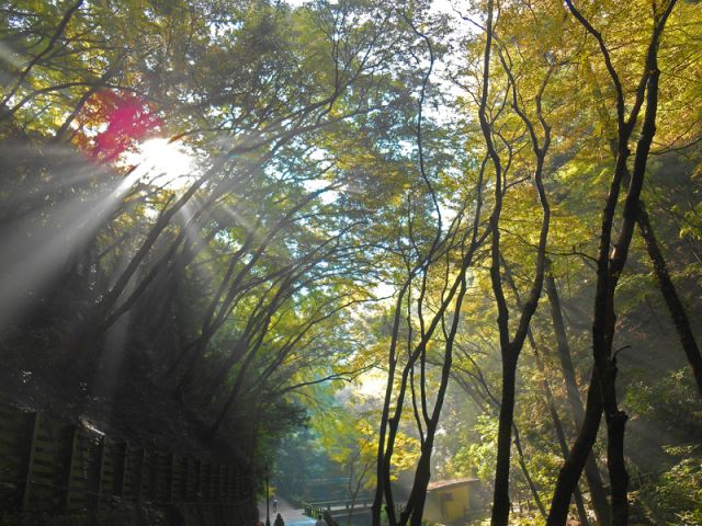 昨日の朝は箕面公園は霧に包まれ幻想的でした。