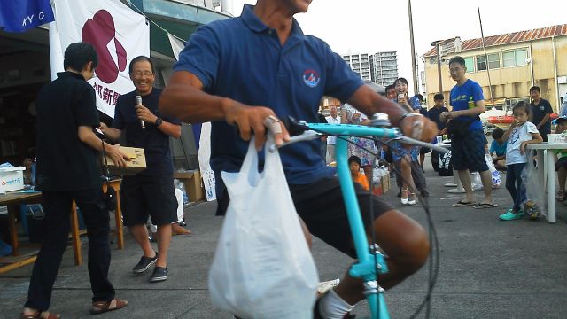 お楽しみ抽選会が始まり全員に何らかの商品があたりました。毎年、折りたたみ自転車をゲットしたいと思っていますが、籤運が悪いのか自転車きませんね。
