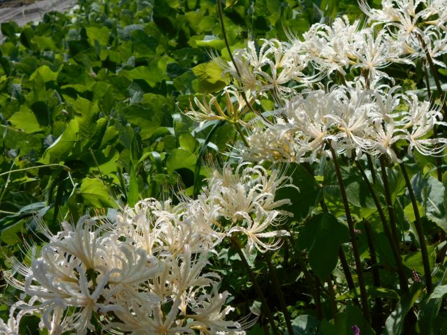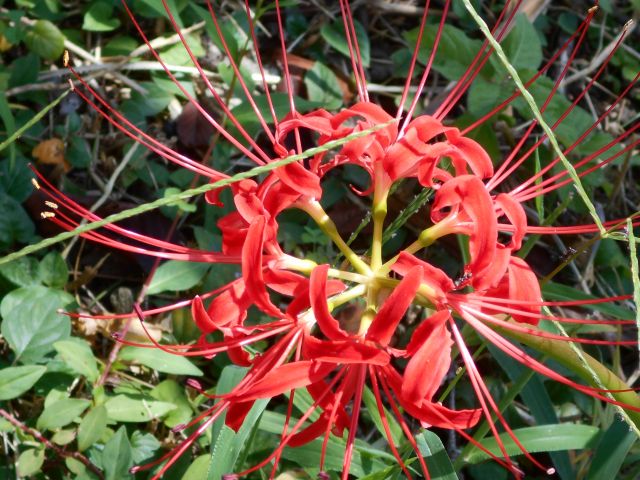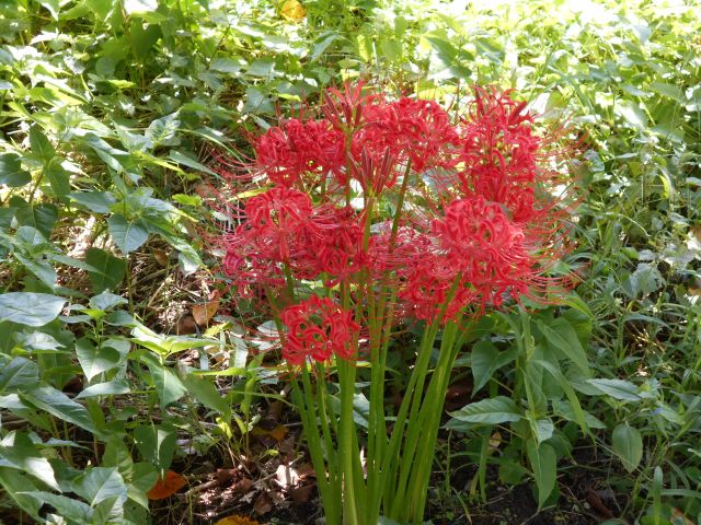 彼岸に咲くから彼岸花 龍田川岸では、ようやく咲き始めました。