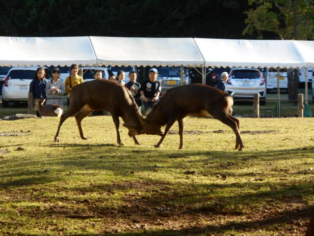 鹿相撲 みんなが観ているとサービス心がいっぱい・・・