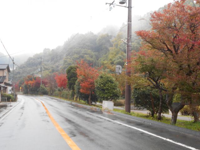 雨が止まず、車から出ることも無理 やむなく道路沿いの紅葉を撮りましたが・・・