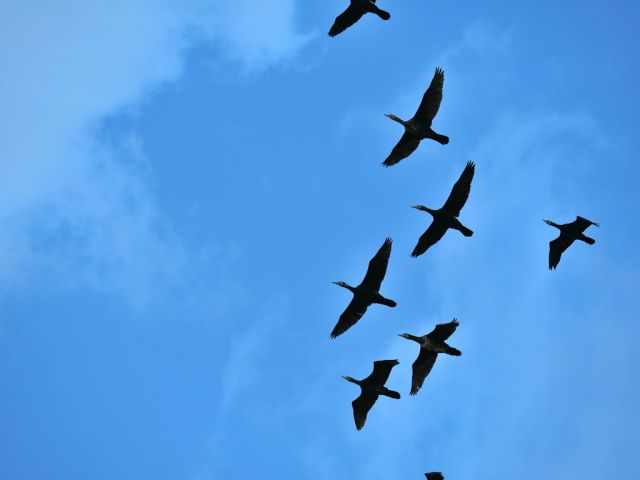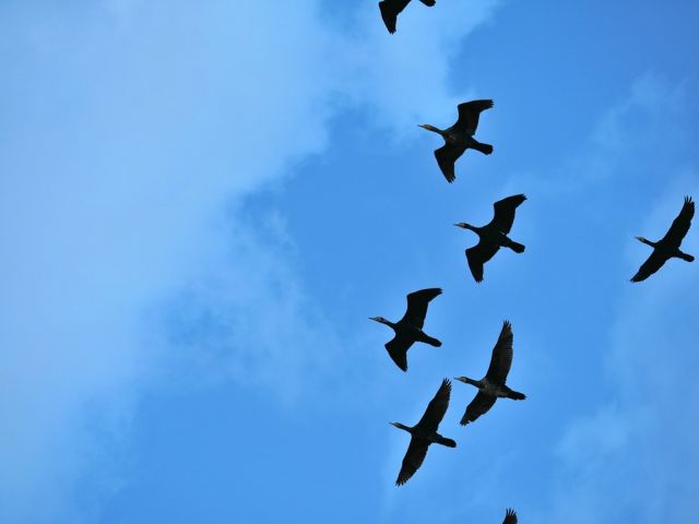 昨日の夕方近所をぶらりしていたら、空に黒い鳥の大群が飛んでいましたのでパチリ。どうも鵜のようですが100羽くらい飛んでいたので異様でした。