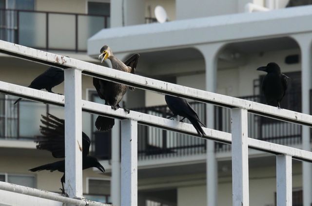 《 揉めごと 》 鵜とカラスで何やら揉めごとが…