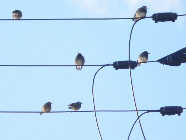 電線のムクドリ 逆光でしたが、補正+1.3で撮影しました。