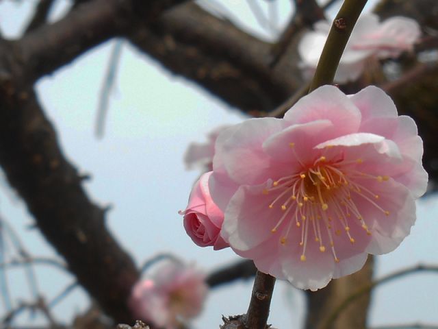 よそ様のお庭で1輪の梅を拝借。春を演出したのは(F)
