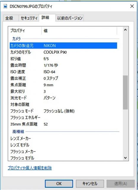PCに取り込んだ写真を右クリックのプロパティー、詳細タグで下記のカメラデータを見ることが出来ます。 この設定とは違うのかな?