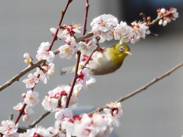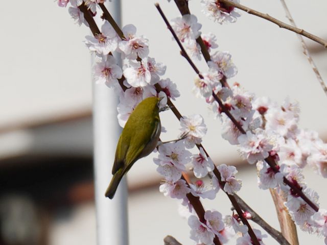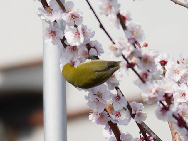 今日の朝、散歩に行くときメジロが来ていたのでパチリ。
