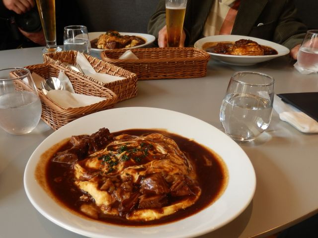煮込み牛肉は大きめで、デミグラソースがたっぷりと、あふれていました。