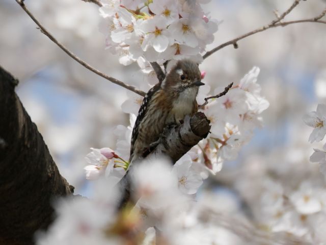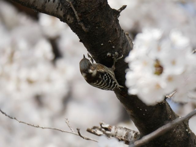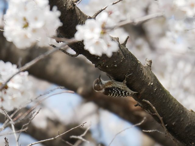 近所を散歩して桜を撮りに行ったら、コゲラがいました。