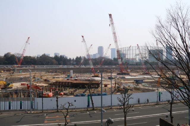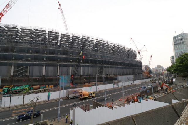 新国立競技場が1年前に比べ、建物の形が見えるまで建設が進みました。