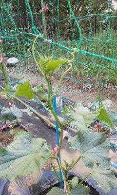 キューリのつるがネットに届きました