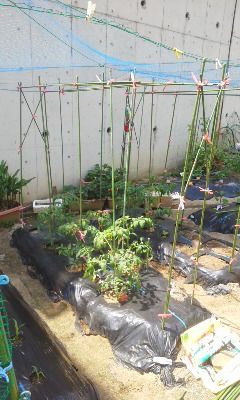 大玉トマト(桃太郎ギフト)に支柱立てました