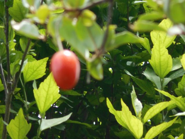 市鹿野村の庭にはグミが鈴なりに実ってた。赤くなるのが待ちきれずオレンジのうちから食べていた。