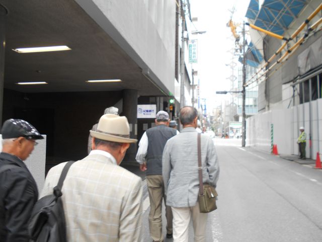 懇親会へ移動 右の工事現場は堂島ホテルかな・・・