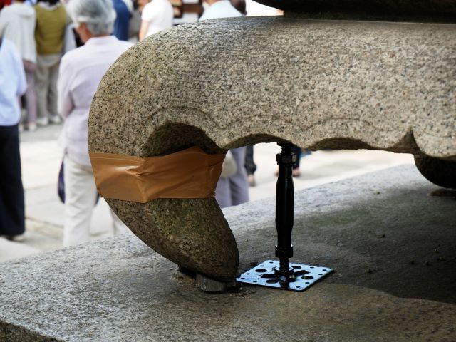 ■ 石灯篭が松葉づえ ここにも地震の被害が・・ ■