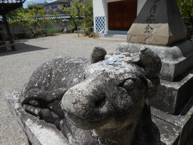 牛の頭上には1円・5円・10円玉が乗かっていました。