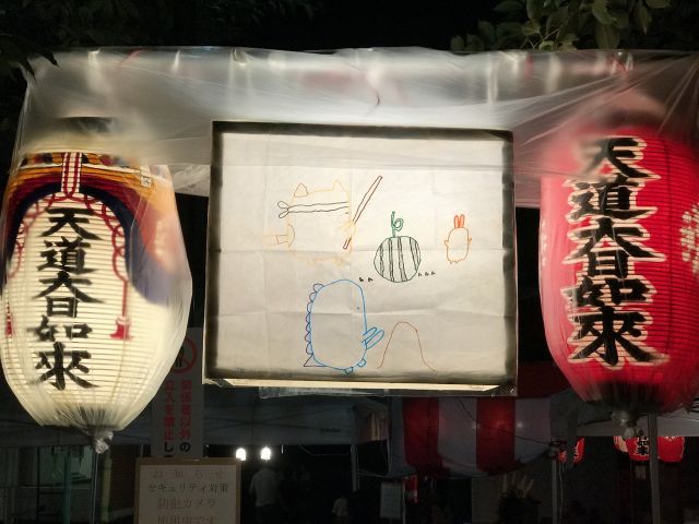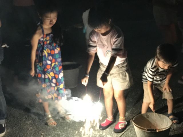 夜は提灯に明かりが灯り、花火大会です。