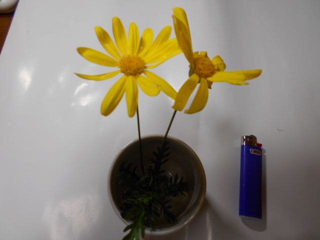 よく似た花にユリオプスデージーがあります。