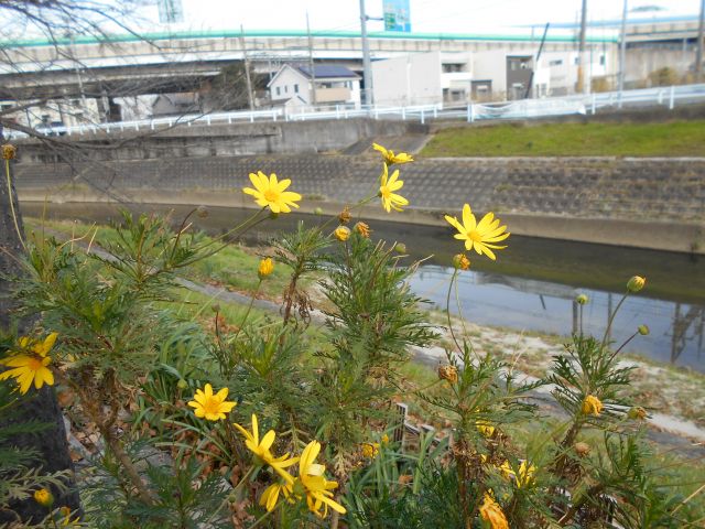 【龍田川岸の黄色い花】