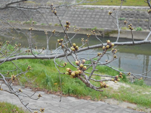 市の職員か気象庁の方か、わかりませんが、ノート片手に桜の枝を一本一本調べていました。蕾は固くて、あと1週間で咲くとは思えないのですが・・・