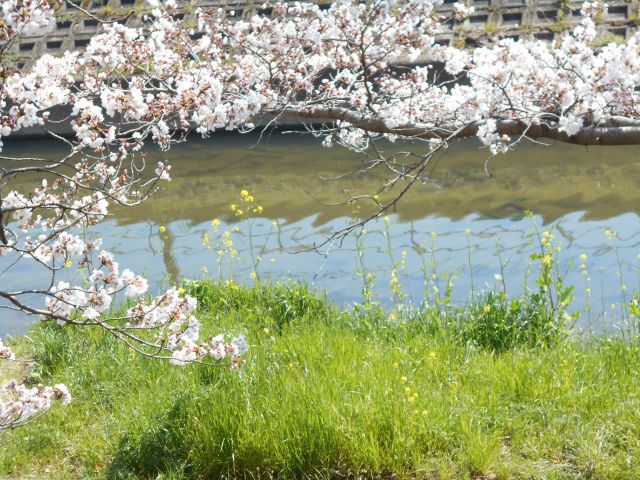 例年は河岸一面に菜の花が咲き、サクラとのコラボが見事なのですが・・・今年は菜の花もボチボチです。