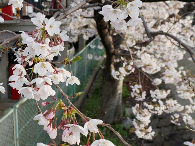 竜田川のサクラ やっと満開