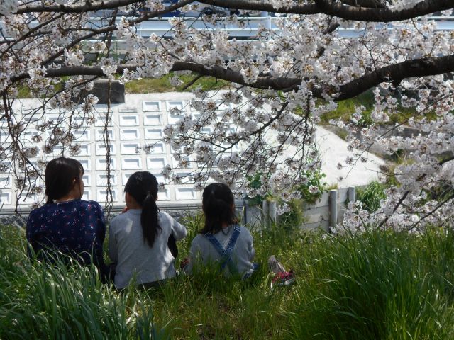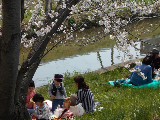 土手のあちこちでミニ花見が・・・