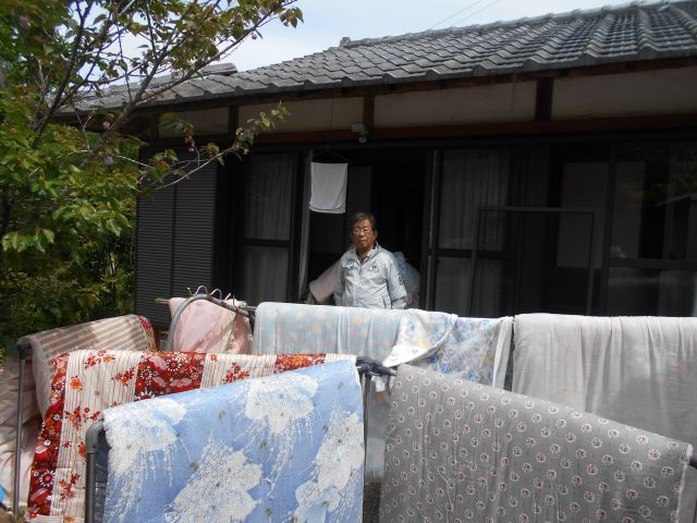 法事のため12組の布団を天日干ししています。