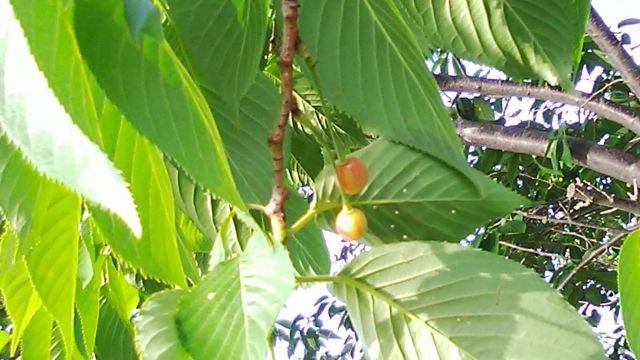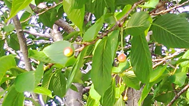 桜の木にサクランボかな? なにかなっています。
