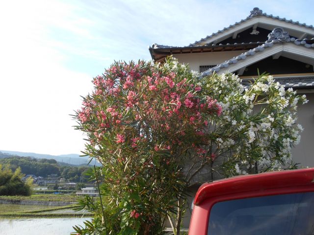 散策の途中、紅白の夾竹桃を発見しました。
