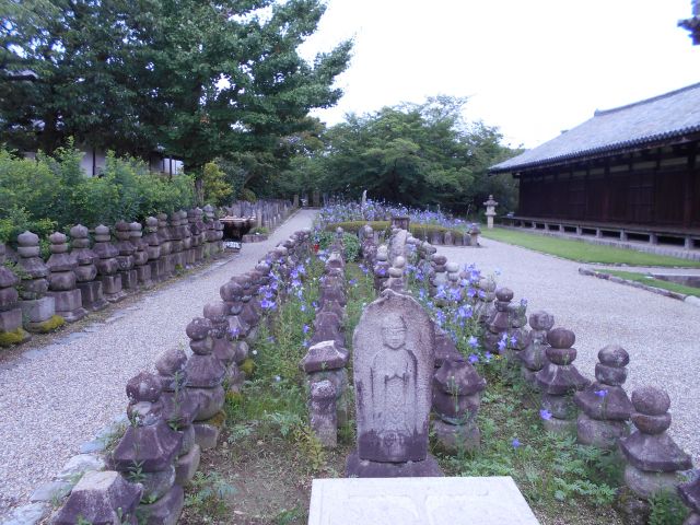 寺内には2500余基の石塔・石仏が整然と並んでおり、その間に桔梗の花が咲いていました。
