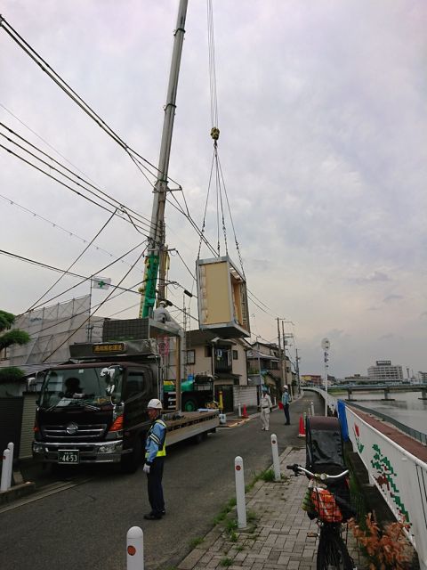 《 クレーンでユニットを所定の位置に設置、間違ったらエライことに! 》
