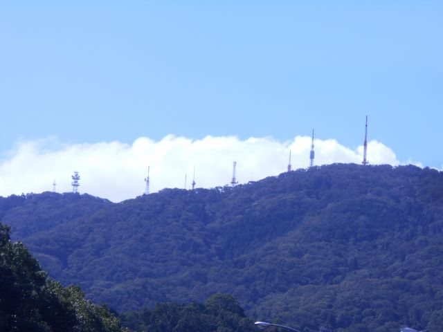 生駒山頂に夏雲(積雲)がかかっています。山の斜面で上昇気流が発生するので頂上付近では このような雲が現れます。