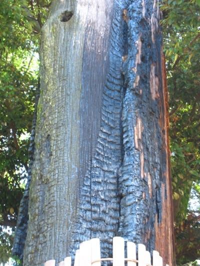 ご覧の通り痛々しく焼けただれています。戦前に落雷に遭い、さらに40年前には火災にもあったのです。