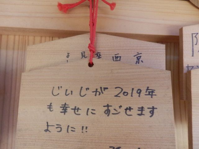 この生命力にすがって幹には絵馬が掛かっています。