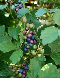 今朝の散歩道で野葡萄を見つけました。