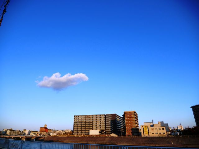 《 今日の夕方の空は青一色、唯一東の空に雲一つ 》