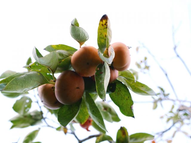 《 秋も深まり柿も収穫時期、上の実はカラスに食い荒らされました 》