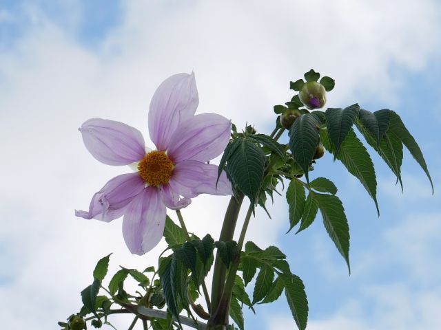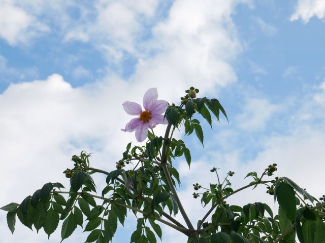 今日は曇り空、風は強いですが気温はさほど寒くはないので、午後から近所をぶらり散歩、散歩道に皇帝ダリアが咲いていました。