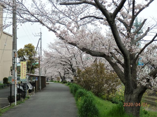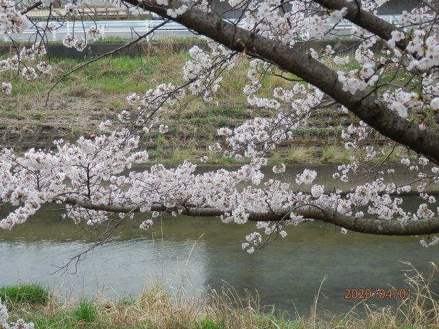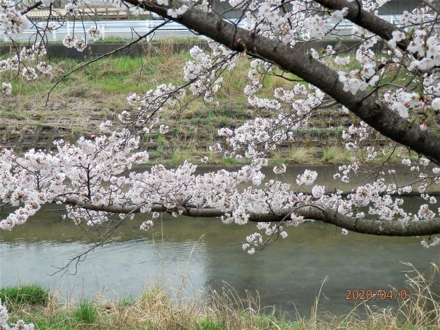 ご覧の通り、誰も歩いていません。去年の今ごろは堤のあちこちにブルーシートを敷いて桜を楽しんでいましたが・・・みんな我慢してるんだね 非常事態だね