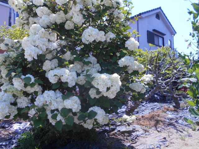 遠くに白い大きな花が見えたので、よそ様の庭に接近しました。