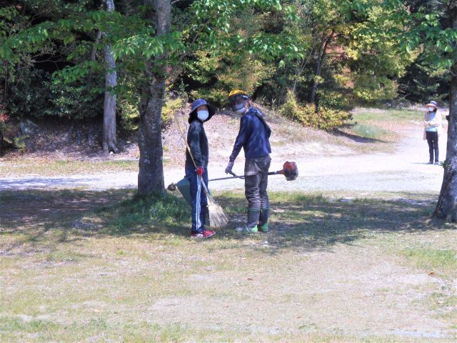 生駒神社の境内で業者かボランティアかわかりませんが除草作業をしてました。