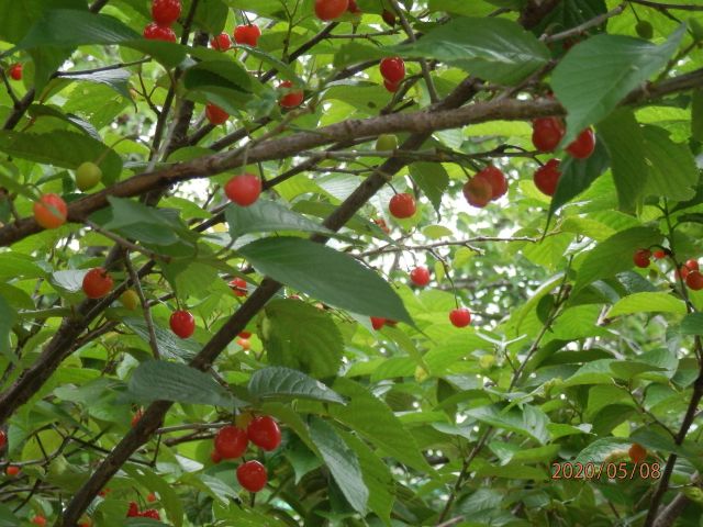 今日の散歩中に鈴なりのサクランボを見つけました。