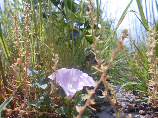 暇人の見つけた昼咲月見草にも似ているし、ヒルガオにも似てるし・・・よくわからない。明日、もう一度調査してきます。